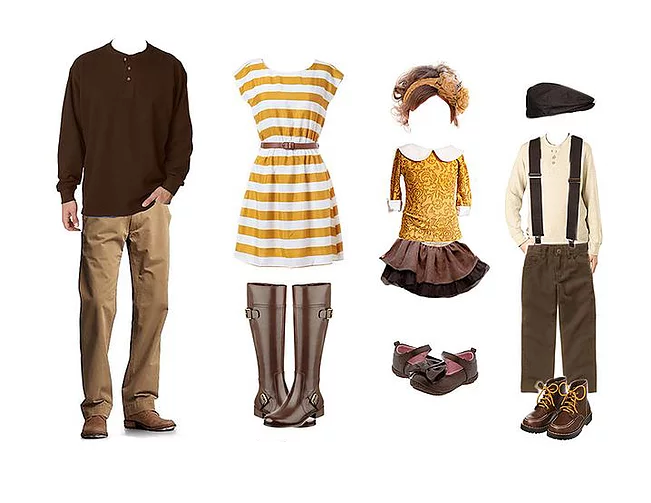 Last but not least, we had to do some pumpkin spice inspired options! Here we have denim, orange and red, which creates that perfect pumpkin pie feel. I love putting the little girls in a cute patterned dress and tying dad in with the orange bow tie. Little accessories are the great way to bring everyone’s outfits together!